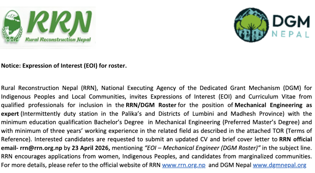 TERMS OF REFERENCE (ToR) Mechanical Engineer – Expert (Forestry-based NTFP Enterprise & Mechanization Support) Project: Dedicated Grant Mechanism (DGM) Nepal Project Project ID: P171720 Grant